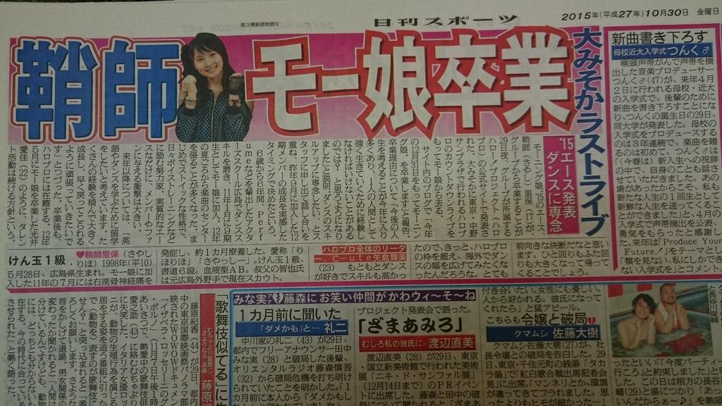 「モーニング娘。’15」として最後の日、12月31日のカウントダウンライブで卒業することを決めさせて頂きました。